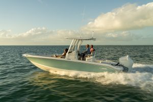 One of our most versatile models, the 250 Dauntless is a perfect synthesis of inshore fishing performance and premium offshore capability. This generously sized 25-ft. bay boat features a roomy center console layout with double forward lounge seats and dual bow seating, and abundant storage can be found throughout the interior. Watersports, angling, and cruising … Continued