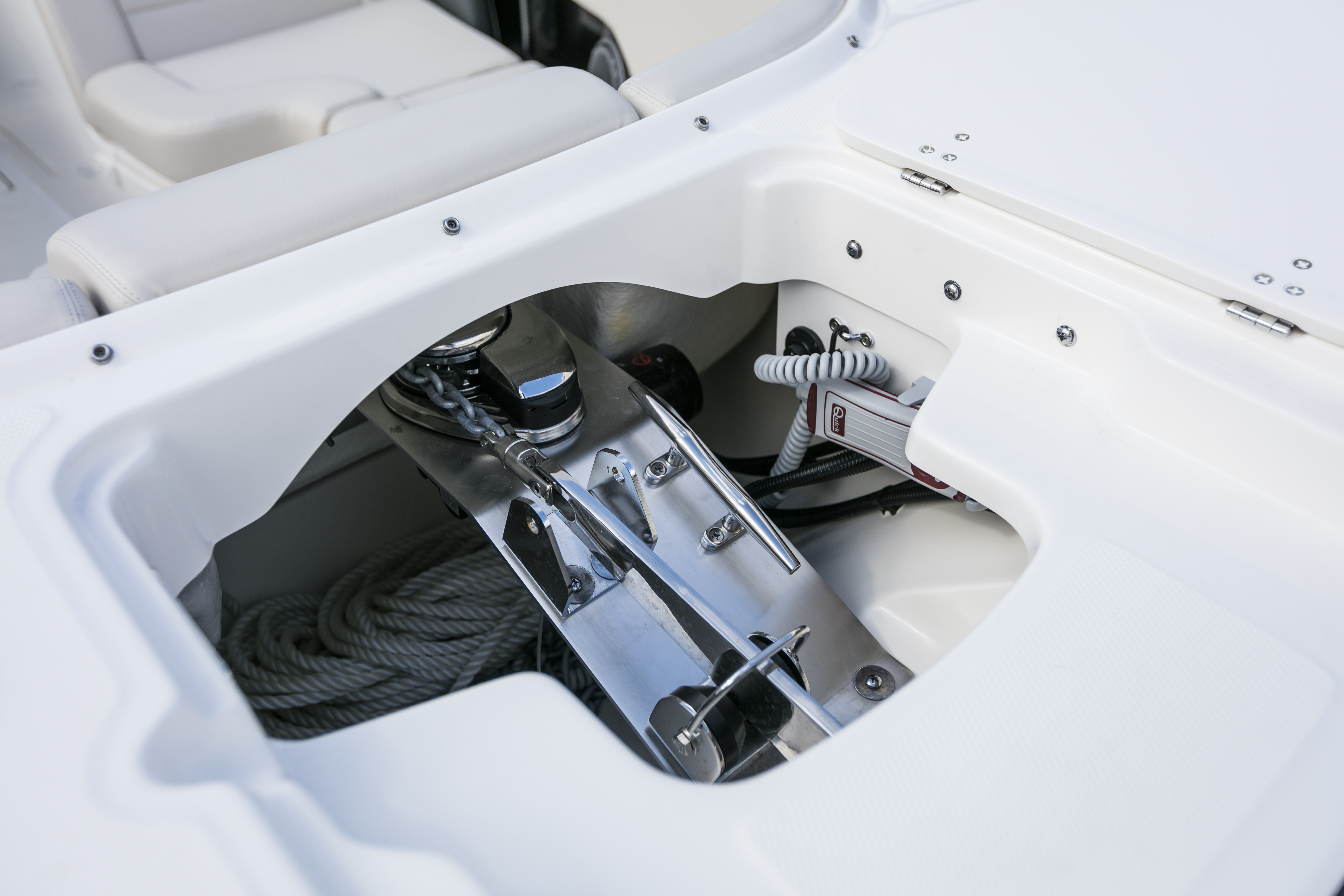 8″ stainless steel cleats – bow (2), stern with stainless steel hawse pipes (2), pop-up spring line (2)