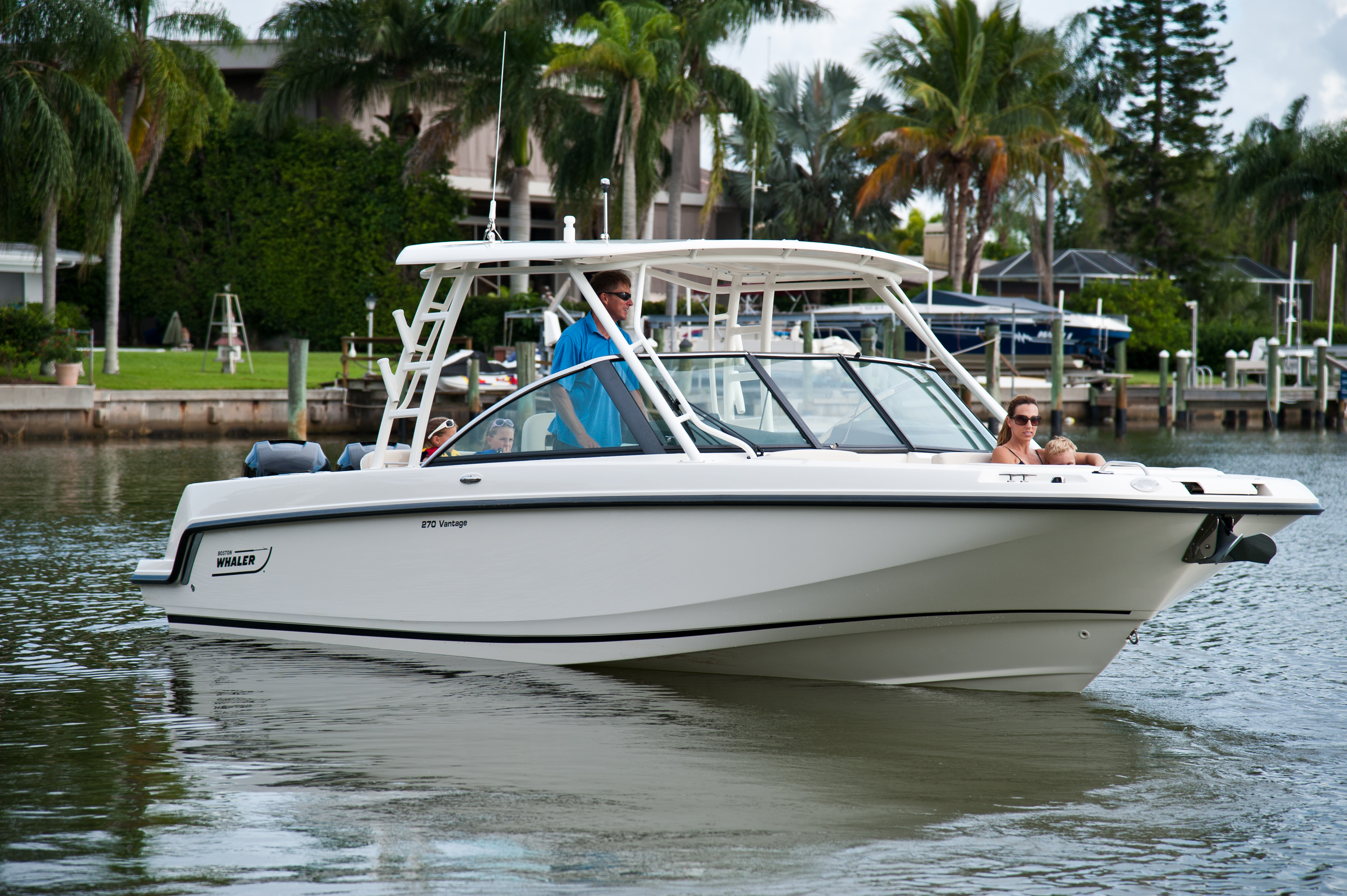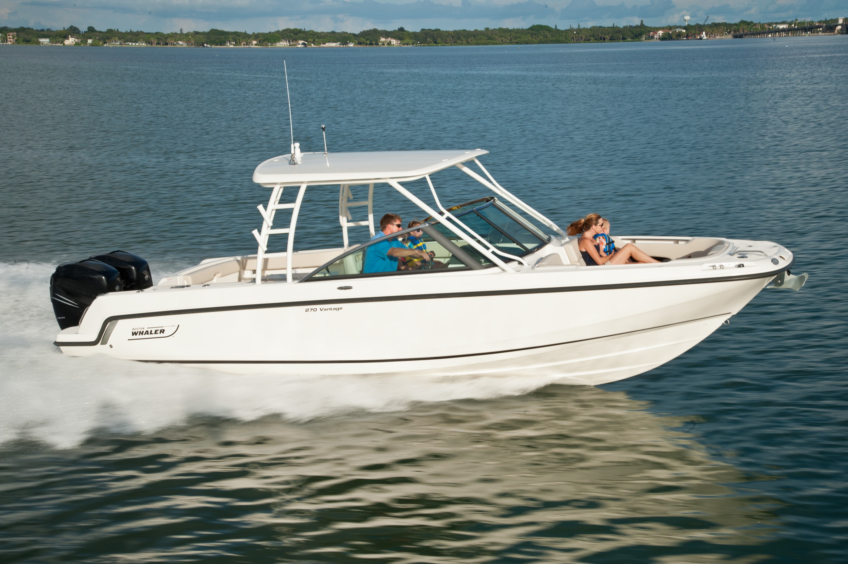 The 280 Vantage combines offshore prowess with bowrider comfort in a 28-foot dual console boat that’s destined to put a smile on your face. Whaler’s legendary unsinkable hull and classic lines make it a timeless craft built on a foundation of safety and performance, and a host of practical options let you configure it to be the custom boat of your dreams. The 280 Vantage is a multi-talented performer for every way you and your family like to enjoy the water, from exploring the islands to offshore fishing to endless watersports thrills.
