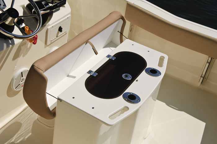 The 195 Sport Dorado is smartly designed to accommodate all your on-the-water activities. It has ample rod storage including four S.S. flush mounted rod holders, under gunnel rod storage, and six console rod holders. A port aft recirculating baitwell, bow cushion set, under gunnel LED lights, a swim platform with ladder, and unique hidden storage compartments in the bow cushion backrests are just some of the notable standard features.