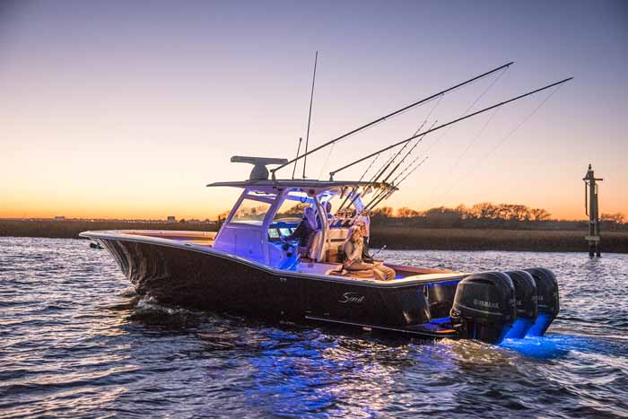 S-Class (luxury models 33’ and up) signifies the upper echelon of our line-up – the highest level of luxury – similar to what you experience with high-end luxury automobiles. The 377 LXF is meticulously crafted with cutting-edge Carbon Epoxy Construction (Carbon Fiber/E-Glass is the main material used in the Epoxy Infusion process) and the highest-performing dual Scout Stepped Hull Technology, while simultaneously pairing it with the finest sophisticated blend of appointments and technologies. Our S-Class denotes the most superior model for our customers.